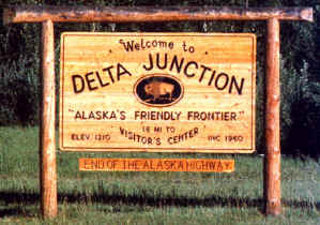 Company D, 341st Engineers. While working on the Alaska Highway, he erected a sign here